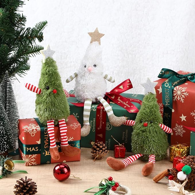 3 Pcs set includes(white, pink, and green) plush Christmas tree ornaments , a perfect holiday gift.
